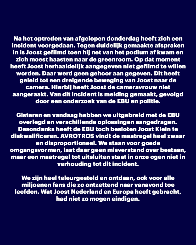 Statement AVROTROS Very Disappointed. Enorm teleurgesteld. Share this: Click to share on X (Opens in new window) X Click to share on Facebook (Opens in new window) Facebook Like Loading... Author: Dray Be kind. View all posts by Dray