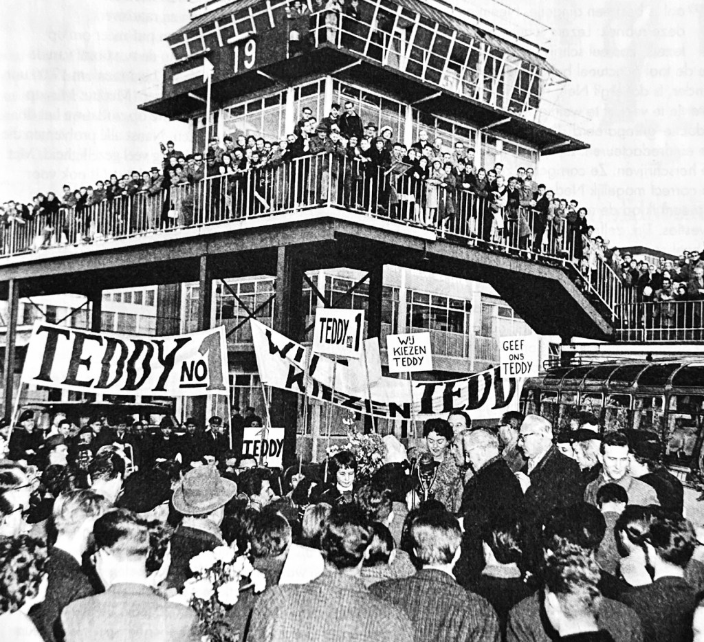 No rainbow-coloured Pride flags, but encouraging cries with which proud fans of Teddy Scholten waved her goodbye at Schiphol airport in 1959 towards the Eurovision Song Contest in Cannes. And… she won with the catchy song Een Beetje, a composition by Dick Schallies with lyrics by Willy van Hemert. Many readers will still be able to sing along to the chorus: ‘Een beetje, verliefd was je wel meer, meneer, dat weet je! Je hart kwam weleens meer op een ideetje. Dat speet je, maar ach weetje, soms vergeet je wel een beetje gauw je eedje van trouw’.